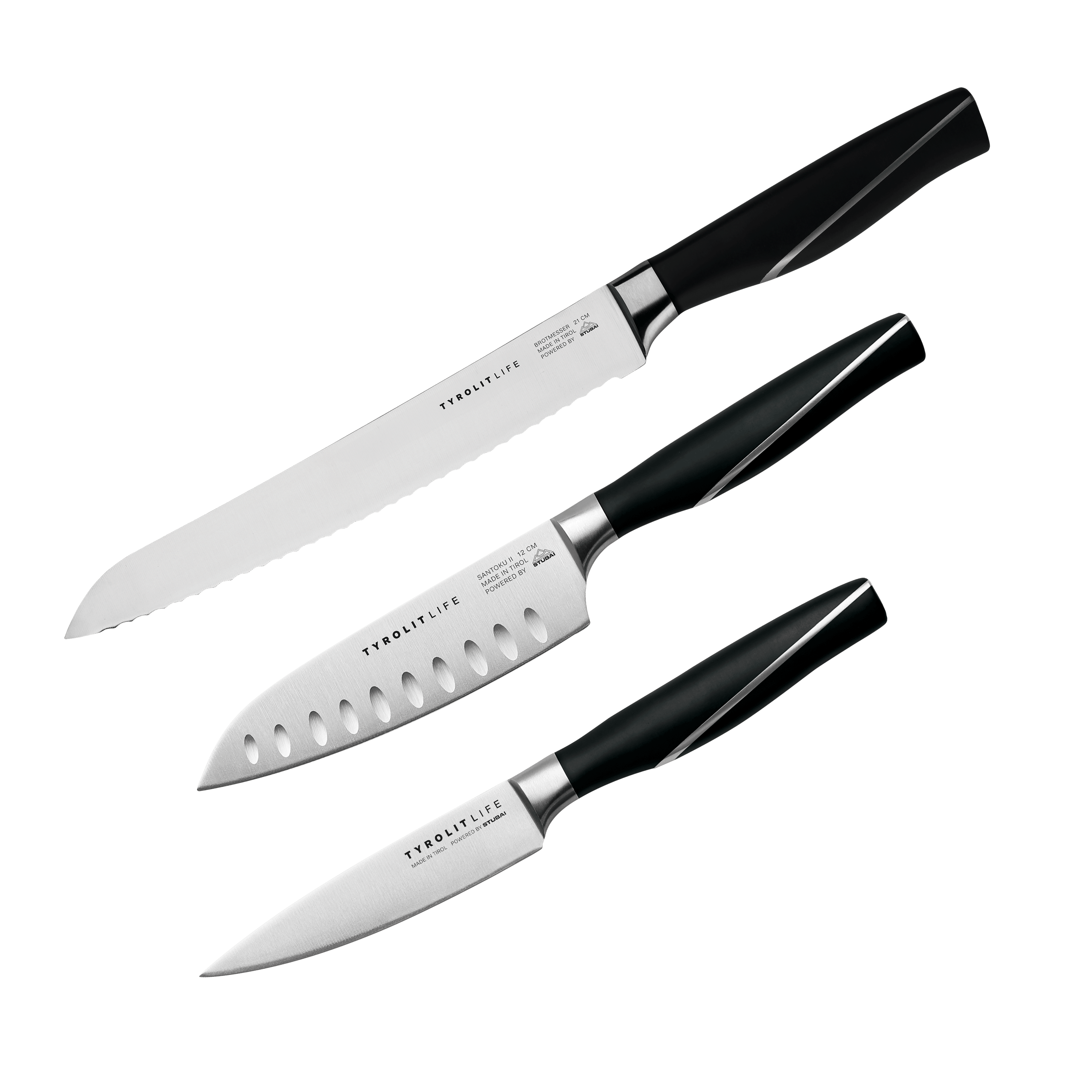 TYROLIT Life Iceline Messerset Jausenpaket mit Spickmesser, Santoku II und Brotmesser